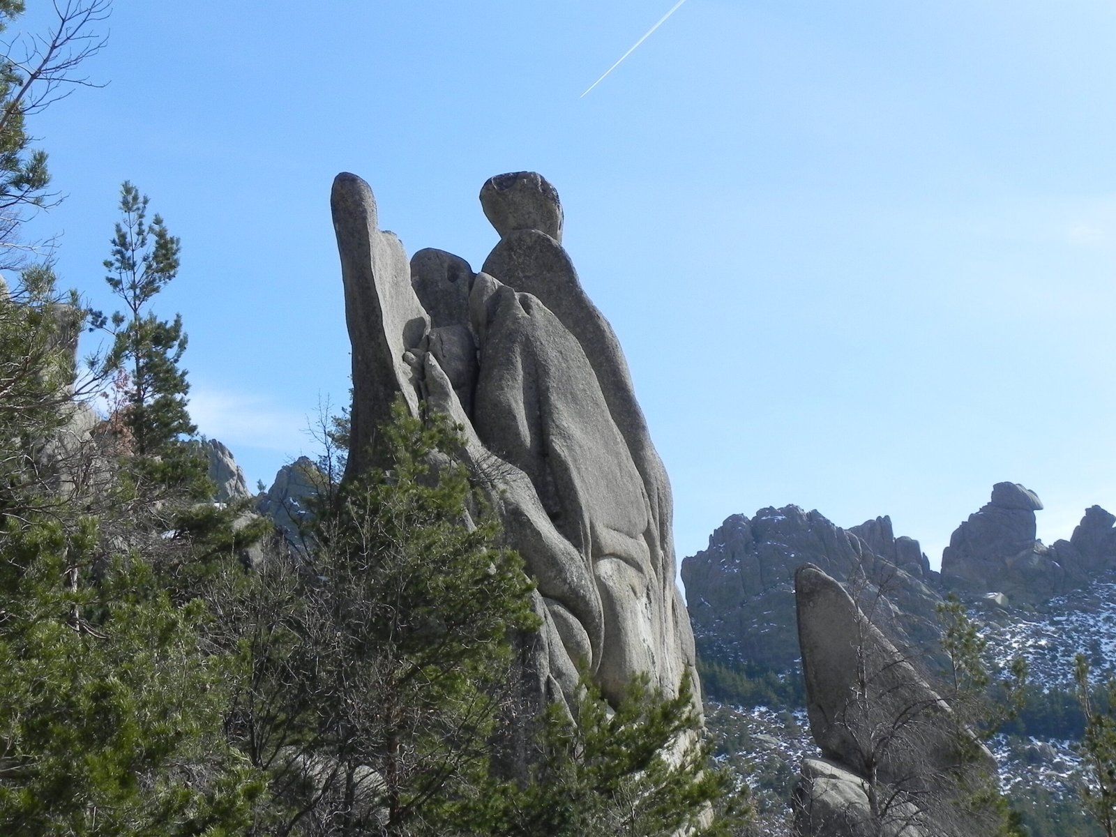 Desde allí iniciaremos la subida por el espectacular Callejón de las Abejas, un corredor natural donde las formaciones rocosas nos acompañan con nombres tan evocadores como las Damas, la Aguja del Sultán, el Cocodrilo, el Collado de la U y la imponente Esfinge. Un ascenso técnico y exigente, pero inolvidable para los amantes de La Pedriza más auténtica.